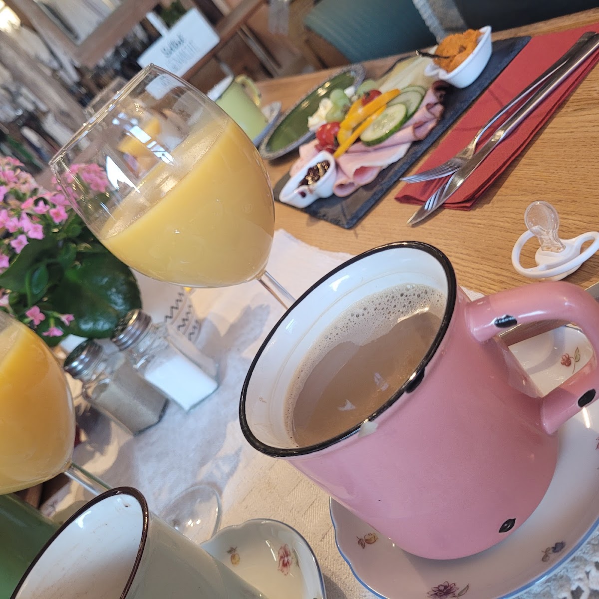 Dahoam bei Leo Dirndl tends to attract those looking to unwind in a calm environment, whether settling in for a weekend breakfast or stepping in for a mid-afternoon treat. The café’s ambiance makes it a comfortable place to spend a little time on your own or with friends, reflecting an easy-going local rhythm rather than a rushed café stop. Morning hours and early afternoons are particularly pleasant times to visit, as the light and low-key background chatter support a restful pause in the day.